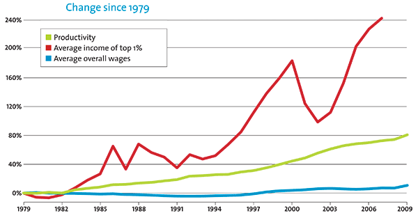 I daresay that only the tiniest minds among us will believe that the wealthy have actually earned the profits as portrayed in this image. It is an enormous fallacy to assume that they’ve been working harder and deserve these profits, when the truth is painfully the opposite: wealth is driven by productivity and productivity is driven primarily by labor.