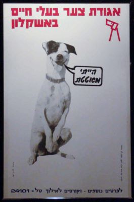 In fact, one time we took Vivis (she was the most famous dog in Israel) on tour and we all stopped to stretch. The tour was to build support for Humane Societies [image on the right] and my favorite vet from Jerusalem came along on the trip. At one stop, I told Vivis to go pee pee. He looked at me and told me I couldn’t train a dog to do that. Sure enough, Vivis went a little distance from the bus, squatted, peed, and then scratched at the ground (as dogs sometimes do). He was amazed.